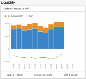 Liquidity refers to the availability of assets that a business can easily convert into cash. Money in the bank and trade debtors (customer invoices awaiting payment) are excellent examples of this, but what about your work in progress? The value of work completed but not yet invoiced is just as important as cash. So, when Wink includes it in your liquidity reporting, it offers a more complete picture of your future cash position. That means you’ve got eyes on all the money!