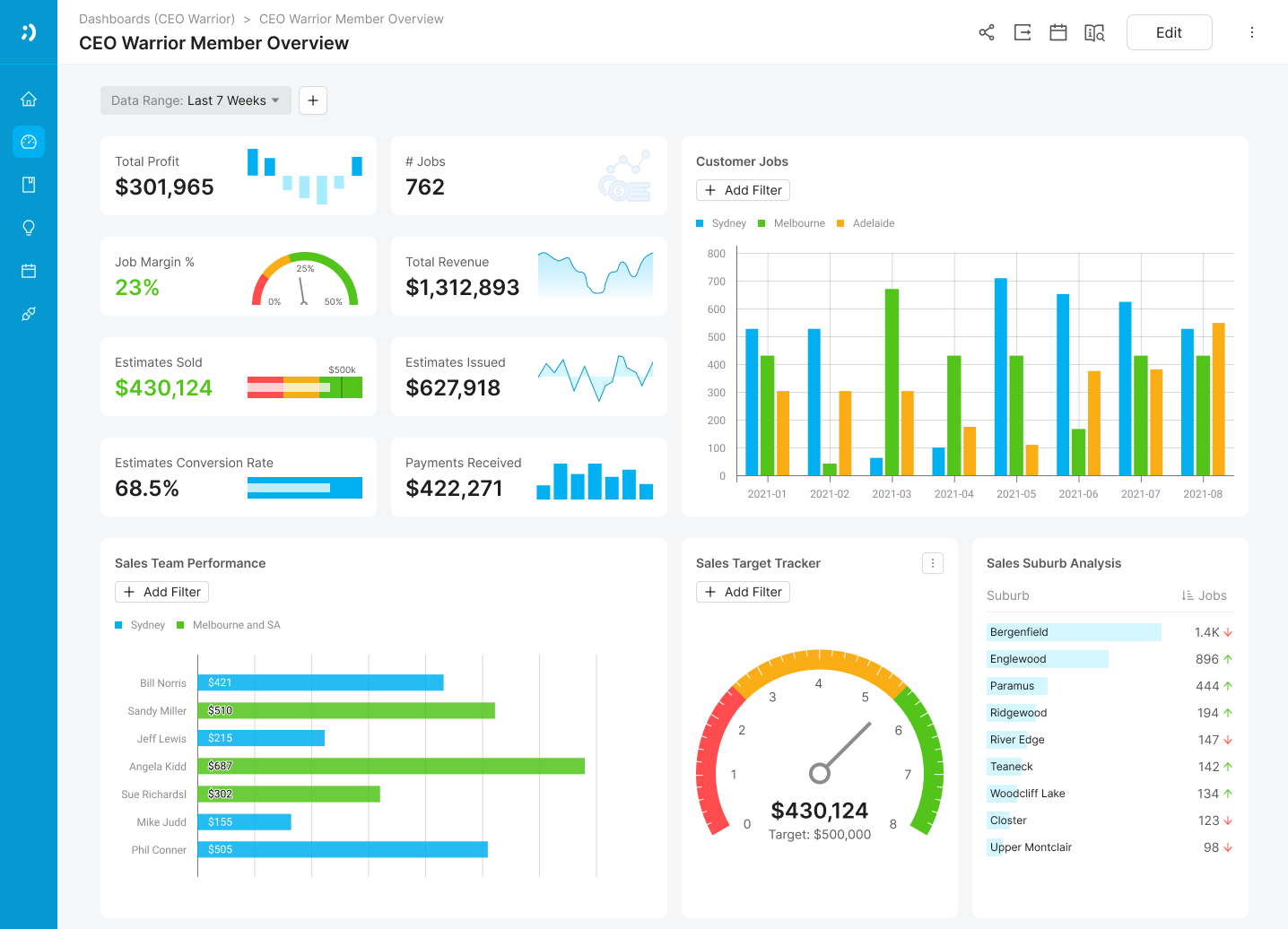You will be able to track the most important numbers across your business from both your ServiceTitan data and other business software, like your financial and marketing tools. You'll get flexible, spreadsheet-style reporting based on accurate, current data, along with graphic dashboards.